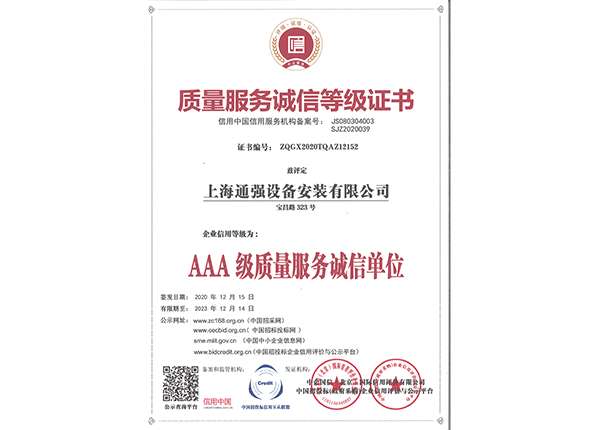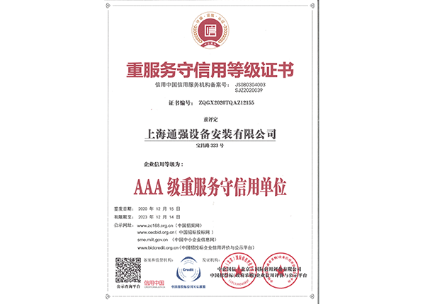 上海通強(qiáng)設(shè)備安裝有限公司注冊(cè)資金2000萬(wàn)元,資產(chǎn)總量為100000萬(wàn)元的專業(yè)設(shè)備安裝公司,公司專業(yè)從事工業(yè)與民用建筑的設(shè)備安裝、非標(biāo)設(shè)備的制作、鋼結(jié)構(gòu)制作安裝、中央空調(diào)系統(tǒng)的安裝,水電及管道的安裝。經(jīng)過(guò)20多年艱苦創(chuàng)業(yè)現(xiàn)已成為一個(gè)具有國(guó)家二級(jí)安裝資質(zhì),獲得上海市“重合同,守信用”的施工單位。